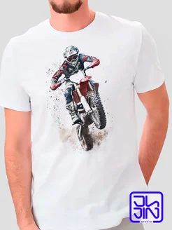 Футболка Крутой черно-красный мотоцикл для экстрима