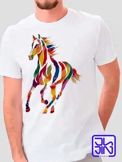 Футболка Радужная абстрактная лошадь в ярких цветах