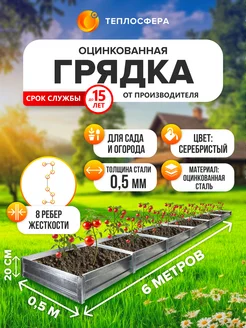 Грядка оцинкованная 6,0 м х 0,5 м. Высота 20 см