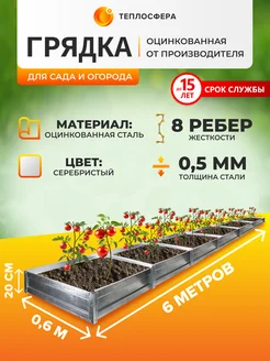 Грядка оцинкованная 6,0 м х 0,6 м. Высота 20 см