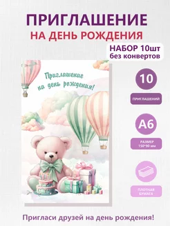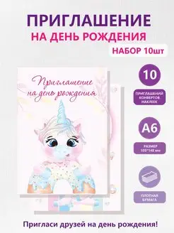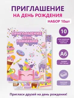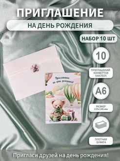 Набор приглашений на день рождения с конвертами