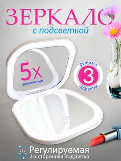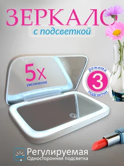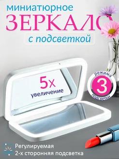 Зеркало косметическое компактное с подсветкой для макияжа 5x
