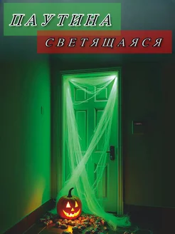 Искусственная светящаяся паутина с пауками, Хэллоуин декор