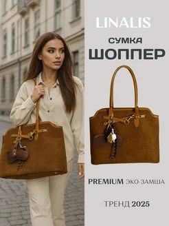 Сумка женская большая коричневая замшевая шоппер с обвесами