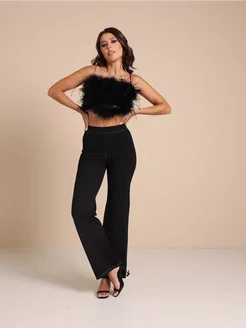 Брюки палаццо трикотажные на резинке офисные штаны клеш