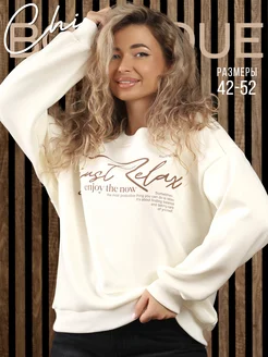 Свитшот оверсайз с мягким ворсом внутри базовый худи кофта