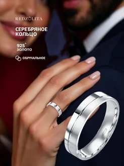 Кольцо обручальное серебряное 925