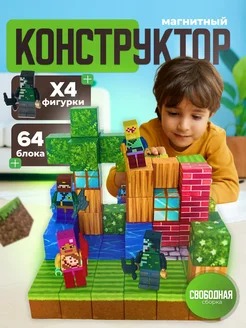 Магнитный конструктор Minecraft "кирпичный дом" 64 блока