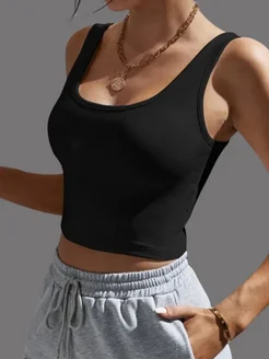 Элегантный черный топ без спины на бретельках