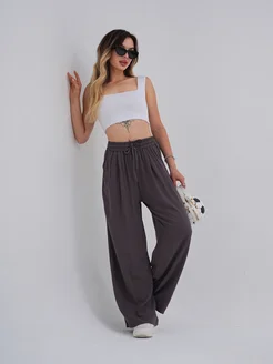 Брюки широкие леннывый на резинке летние
