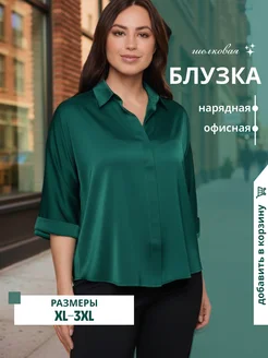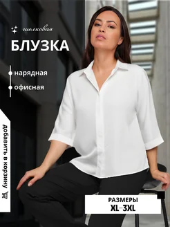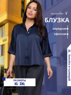 Нарядная шелковая блузка атласная офисная больших размеров