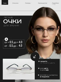 Очки для зрения безободковые от синего света +2.50, золотые