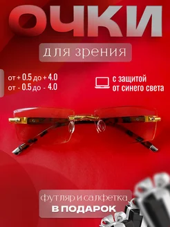 Очки для зрения безободковые от синего света +1.00, золотые