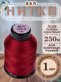86Л Полиэфирные комплексные нитки 250 м №28 темно-красный