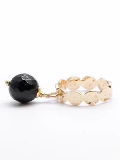 6235 Кольцо с граненым черным агатом дизайнерское премиум A+
