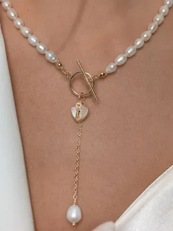 6066 Перламутровое колье в золотом цвете нежное изделие топ
