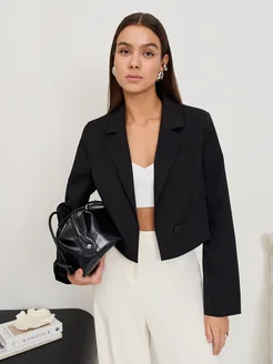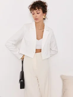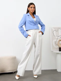 Пиджак оверсайз жакет укороченный блейзер голубой