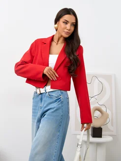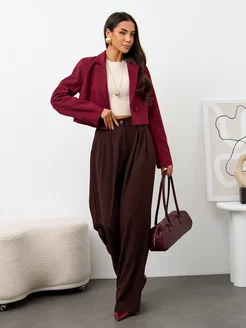 Пиджак оверсайз жакет укороченный блейзер бордовый