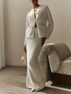 Костюм вязаный пушистый c кардиганом и юбкой