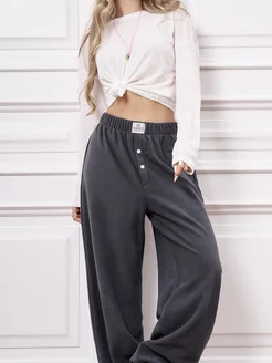 Брюки теплые флисовые на резинке палаццо джоггеры