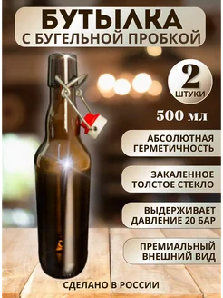 Бутылка коричневая с бугельной пробкой, 0,5 литра - 2 шт