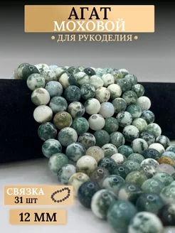 Бусины из натурального камня Агат моховой 12мм 31шт