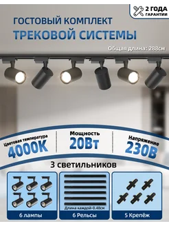 Трековый светильник комплект черный 20Вт 4000K 6шт