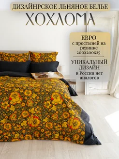 Постельное белье Лен Хлопок Евро с Простыней на резинке