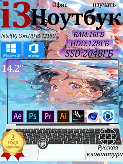 i3 ноутбук 128 2048ГБ 4 ядра для работы учебы Мощный 14.2"