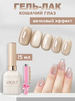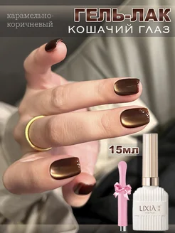 Гель лак для ногтей Кошачий глаз шелк Карамельно-коричневый