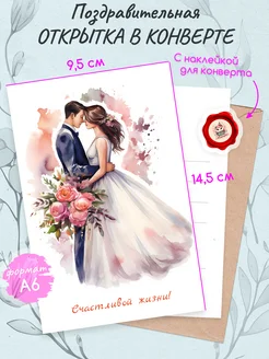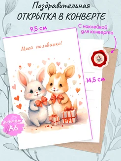 Открытка "Моей половинке" с крафт конвертом 14.5x9.5