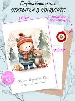 Открытка "Пусть сбудутся мечты!" с крафт конвертом 14.5x9.5