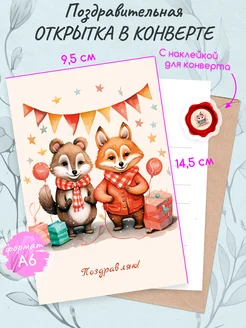 Открытка "Поздравляем" с крафт конвертом 14.5x9.5
