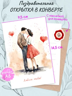 Открытка "Люблю тебя" с крафт конвертом 14.5x9.5