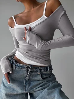Лонгслив облегающий серый с майкой