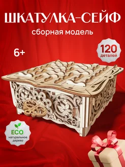 Сборная модель из дерева 3D пазл Шкатулка сейф