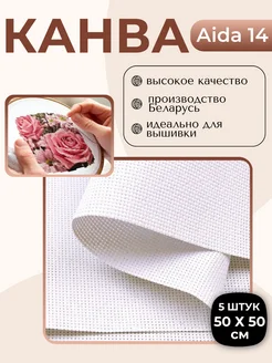 Канва для вышивания крестиком белая Aida 14 50х50 5шт