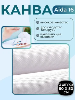 Канва для вышивания крестиком белая Aida 16 50х50 3шт