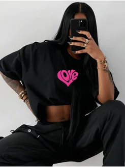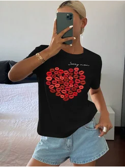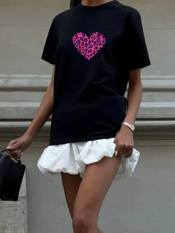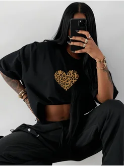 Футболка тренд с принтом сердце леопард