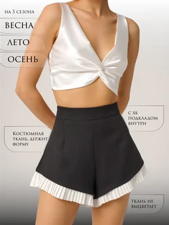 Мини шорты с белой плиссировкой