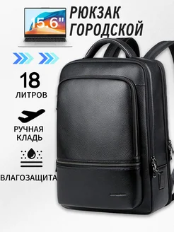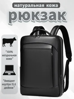 Рюкзак кожаный чёрный бизнес-класс для ноутбука 15.6