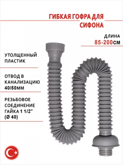 Гофра для сифона 1 1 2" + переходник на 1 1 4", 85-200 см