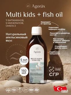 Мульти Витамины для детей + Омега 3 детская, 150 мл
