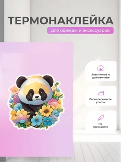 Термонаклейка с принтом - Панда в цветах