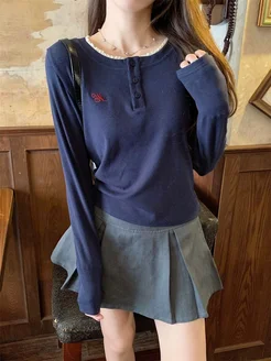 Лонгслив школьный с вырезом y2k Кофта на пуговицах