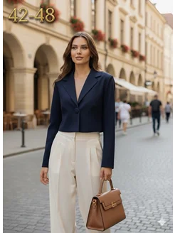 Пиджак укороченный женский тёмно-синий классический оверсайз