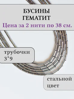 Бусины для рукоделия гематит трубочки 2 нити 3*9