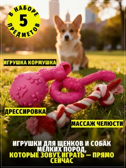 Набор игрушек для собак и щенков 5 в 1 кольцо канат мячик