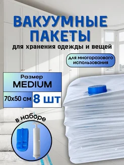 Вакуумные пакеты для одежды и вещей 70х50 с насосом 8 шт