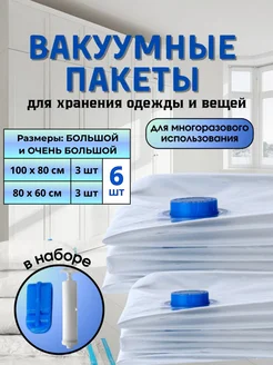 Вакуумные пакеты для одежды 6 шт 100х80, 80х60 с насосом
